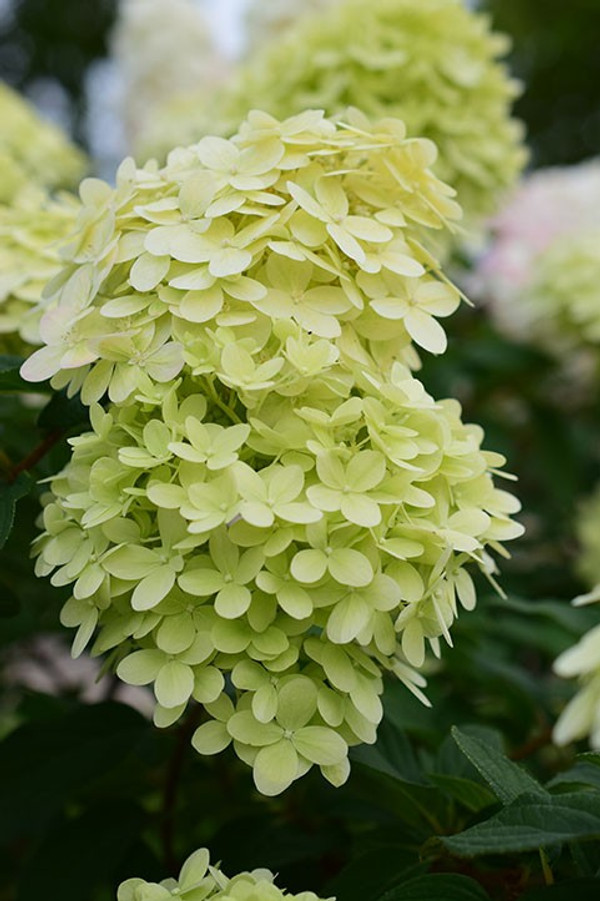 Die Rispenhortensie „Limelight” (wissenschaftlicher Name: Hydrangea paniculate „Limelight”) hat kräftige Zweige und hellgrünes Laub. Die Rispenhortensie blüht zunächst mit weißen Blüten, die eine limettenfarbene Schicht aufweisen. Von Juli bis Oktober steht die Rispenhortensie „Limelight” in Blüte. Die Rispenblüten können bis zu 40 Zentimeter groß werden und sorgen für einen lebendigen Garten voller Bienen und Schmetterlinge. Ein schöner Nebeneffekt: Im September und Oktober blüht die Hortensie mit rosa Blüten.