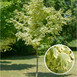 Suchen Sie einen frischgrünen Blickfang für den Garten? Womöglich ist Acer platanoides ‚Drummondii‘, auch weißbunter Spitzahorn genannt, etwas für Sie. Dieser mittelgroße Baum hat eine glatte, dunkelgraue Rinde und eine dichte, pyramidale Krone. Diese langsam wachsende Sorte erreicht eine Höhe zwischen acht und fünfzehn Metern und wird zirka sechs bis zehn Meter breit. Der Baum eignet sich perfekt entlang einer Allee oder für Parks. Auch solitär (im Garten) kommt der Baum gut zu seinem Recht. Die breite Krone bietet einen angenehmen Schatten.