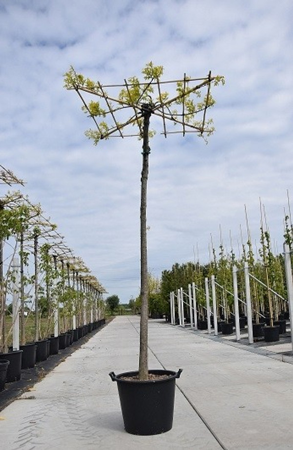Die Sumpfeiche Dachform ist ein wunderschöner Baum mit einer einzigartigen Erscheinung. Die Äste der Sumpfeiche wachsen horizontal, wodurch der Baum als Dachbaum gepflanzt werden kann. Im Mai erscheinen die hellgrünen, eichentypischen Blätter an dem Baum. Im Herbst werden die Blätter der winterharten Sumpfeiche eine wunderschöne rot-orangene Herbstfarbe haben. Die blattabwerfende Sumpfeiche wächst langsam und dicht verzweigt. Sie ist sehr pflegeleicht. Die Sumpfeiche steht am liebsten in der prallen Sonne und wächst auf jeder Bodensorte. Der Baum ist nicht nur beliebt bei Menschen, sondern auch bei Tieren!